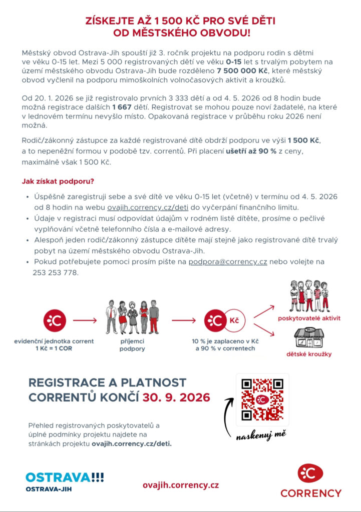 Aktuálně je možné se přihlásit do gymnastické školičky s nástupem od 4. 2. 2026 pro ročníky 2020 – 2022.