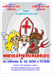 Ve středu 4. 12. 2019 přišel do naší tělocvičny Mikuláš a s ním i jeho pomocníci – čert a anděl.