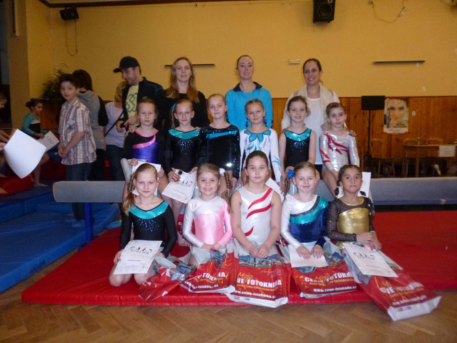 16. 1. se konal náš první závod v roce 2016. Vyjeli jsme do Všetat u Prahy, kde jsme se účastnili závodu Memoriál Jana Palacha. Báli jsme se nepříznivého počasí, hlásili nám -15°C, ale to se naštěstí neobjevilo na teploměru ani v brzkých ranních hodinách, nicméně nastaly problémy na vlakové trati a naše cesta trvala takřka šest hodin. Na závody jsme přijeli deset minut před zahájením. Pořadatelé nás nechali se alespoň chviličku rozcvičit, holky pak hned utíkaly na nástup, protože všechny kromě jedné startovaly v prvním sledu. A co více, začínaly hned kladinou. Nevím, jestli to bylo tím rychlým průběhem nebo tím, že neměly čas přemýšlet, ale závod se jim docela vydařil. Náš oddíl si odvezl díky Klaudii Hynek zlatou a díky Rozálii Ožanové stříbrnou medaili. Ostatní děvčata bohužel předvedla nějaký ten nezdar, ať už na kladince nebo na prostných a to je odsunulo z medailových pozic, o které měly šanci bojovat.