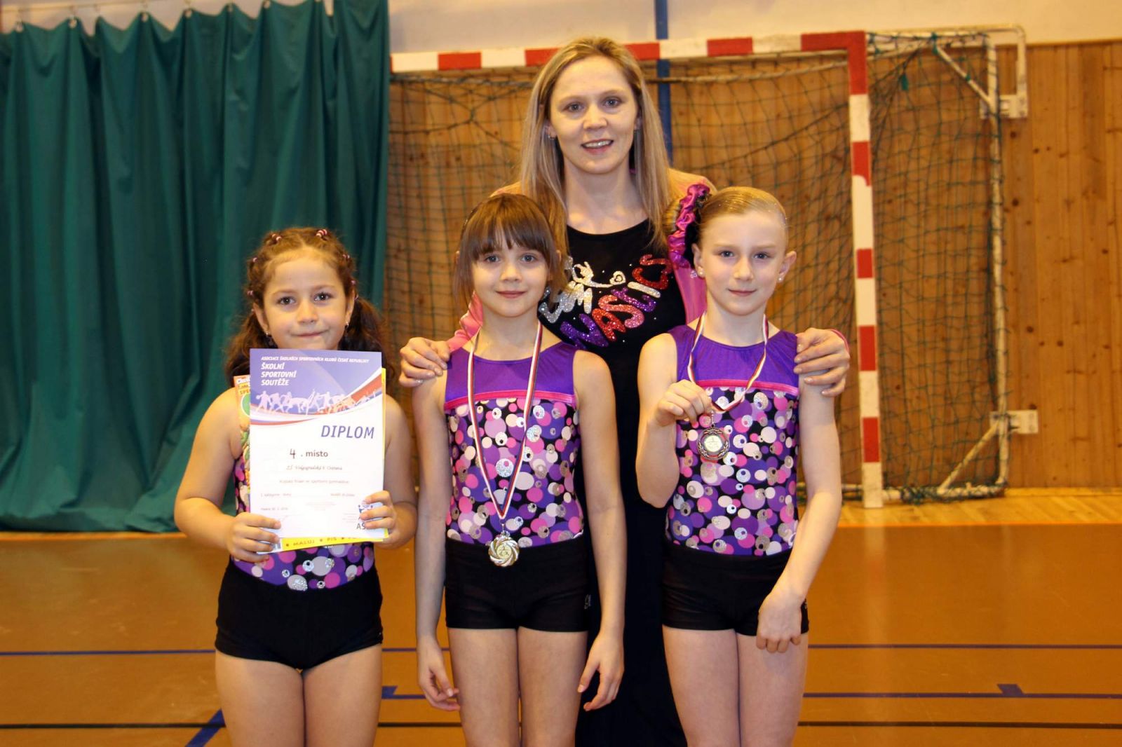 Ve středu 30. 3. 2016 se v Paskově konalo Krajské finále ve sportovní gymnastice základních a středních škol. Naší gymnastiku zastupovala škola Volgogradská 6B, kterou navštěvuje Klaudie Hynek a Leona Bončová. Spolu s Barborou Hájkovou ze Sokolu Moravská Ostrava 1 vytvořily tříčlenné družstvo, které nás zastupovalo v první kategorii – ročníky narození 2006-2009. Toto družstvo skončilo sice na nepopulárním, ale velice hezkém čtvrtém místě. Vyhlášené byly také jednotlivkyně. Ve velice silné konkurenci se Klaudie umístila na 2. místě a Leona na 41. místě.