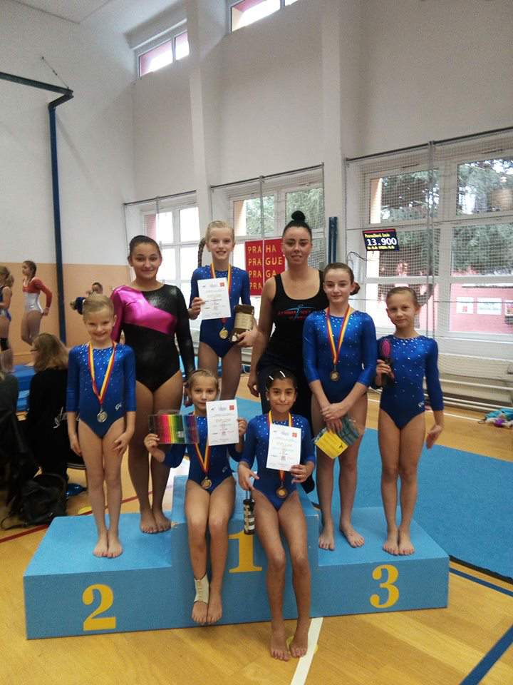 Dále zde startovaly ve kategorii Mladších žákyň Hanka Horsinková, Ella Kostelecká a Simona Kaczorová. I tato děvčata si přes velkou konkurenci vedla skvěle. Všechna 3 děvčata bez jediného pádu a větších chyb s přehledem splnila VS1 a ještě k tomu přidala i skvělá umístění – Ella 2.místo, Simona 3.místo a Hanka 8.místo.