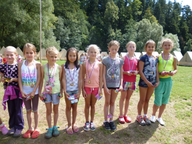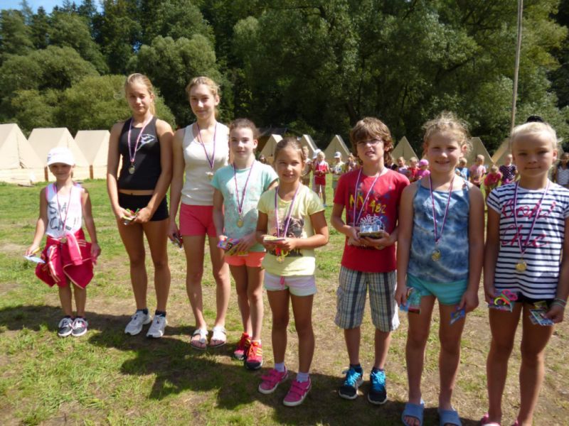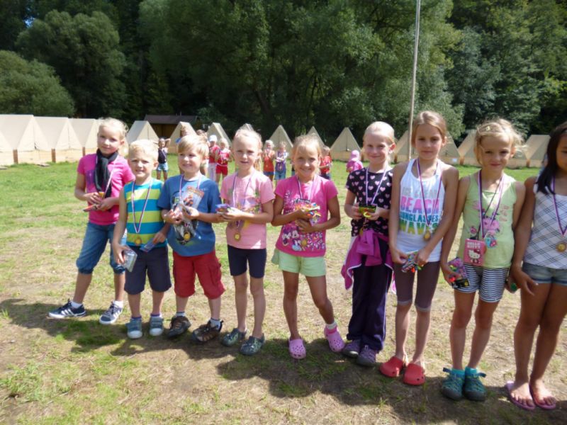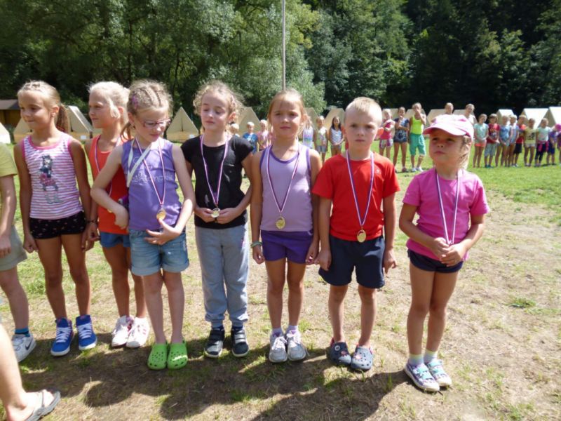 Poslední den se už vyhlašovaly výsledky celotáborové hry. S přehledem vyhráli Jezdci, kteří získali 45 bodů, druhé místo patřilo Orlímu hnízdu s 41 body a těsně třetí bili Justínci se 40 body.