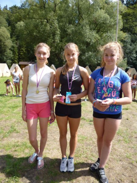 Každý den byla trenéry zvolena jedna barva dne a při obědě se pak připisovaly jednotlivým družstvům body za každý kousek oblečení v této barvě, které měli na sobě. Každý podvečer se také konala silová soutěž, například ve výdrži v přednosu, v rychlosti šplhu v člunkovém běhu aj. Body se připisovaly jak družstvům, tak jsme na konci vyhodnotili největšího siláka, kterým byla Laura Smolecová, na druhém místě skončila Eliška Petrová a třetí byla Kača Orliczková – Velký orel. Kromě her, kterými jsme prokládali jednotlivé fáze cvičení a posilování, jsme hodnotili také úklid a pořádek na pokoji popřípadě chatce. Nejkrásněji uklizeno měli a sladký dort tak vyhrály tyto gymnastky: Renča Štroblíková,Sára Jadrníčková, Klaudinka Hynek, Anička Krýsová a Lucka Knapová. O těch prasátkách, které měly celou dobu na pokoji binec se ani nebudeme zmiňovat – bylo jich hodně J.