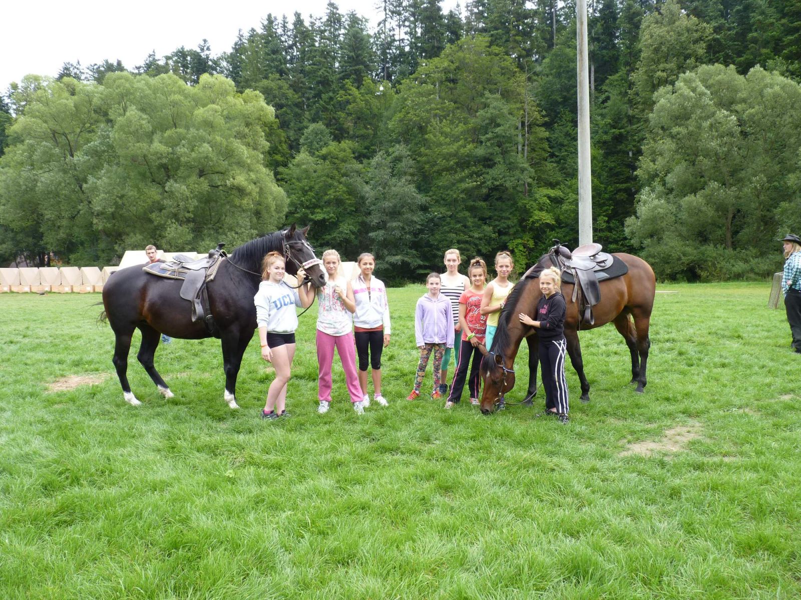 Pro rodiče i některé trenéry byl téměř nadlidský úkol najít vůbec rekreační středisko, nakonec všichni dorazili :). Na začátku soustředění byli děvčata a chlapci rozděleni do tří družstev po 13 členech. V prvním družstvu byla kapitánem určena Nela Štěpandová, toto družstvo si později v rámci jedné z her zvolilo název Orlí hnízdo a dalšími členy byli: Laura Smolecová, Eliška Petrová, Lenka Jaskovičová, Anička Orliczková alias Malý orel, Verča Opelíková, Sára Moocová, Markétka Galková, Kuba Hynek, Patrik Chovanec, Terezka Gromnicová, Kristýnka Foltová a Nela Čonková. V druhém družstvu byla kapitánem Renča Štroblíková a dalšími členy pak: Kača Orliczková alias Velký orel, Klárka Štelclová , Terka Chromá, Natka Najdeková, Peťa Chylová, Julka Poledníková, Adélka Zdvihalová, Lukáš Knap, Vojta Nevrla, Klaudinka Hynek, Terezka Krakůvková a Natálka Papoušková, toto družstvo se pojmenovalo Jezdci. Poslední družstvo se pojmenovalo Justínci čti „Džastínci“, jeho kapitánem byla Kája Adamíková a dalšími členy byli: Paťa Stahalíková, Viki Ringerová, Sára Jadrníčková, Anička Krýsová, Julča Skleničková, Lucka Knapová, Johanka Burdová, Filip Ryška, Vojta Stark, Domča Friedrichová, Karolínka Starková a Barča Hlobilová. Střídavě se k družstvům připojovaly Kája s Kristýnkou Tihelkovy, které jezdily vždy na trénink z nedalekých Heřmánek u Oder.