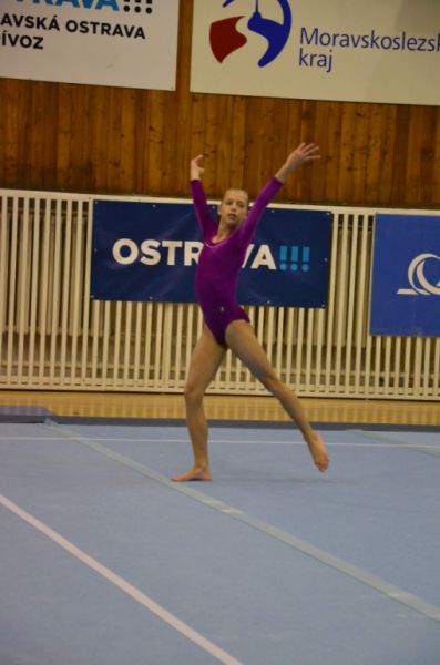 Závod zahájily žákyně roč. narození 2001 a mladší. Náš klub reprezentovaly čtyři závodnice. Nejlépe se dařilo Leničce Jaskovičové, která závod zvládla s jedním pádem a vybojovala tak 5. místo. Sarah Jadrníčková bohužel zaznamenala tři pády a obsadila osmé místo. Verče Ferenčíkové se vůbec nedařilo, nezvládnutá bradla a pád z kladiny ji odsunul na 12. příčku. Poslední 14. místo obsadila Terka Chromá, která však pro dlouhodobé zdravotní potíže vyzkoušela jen dvě nářadí, kladinu a bradla, které zvládla bez vážnějších chyb.