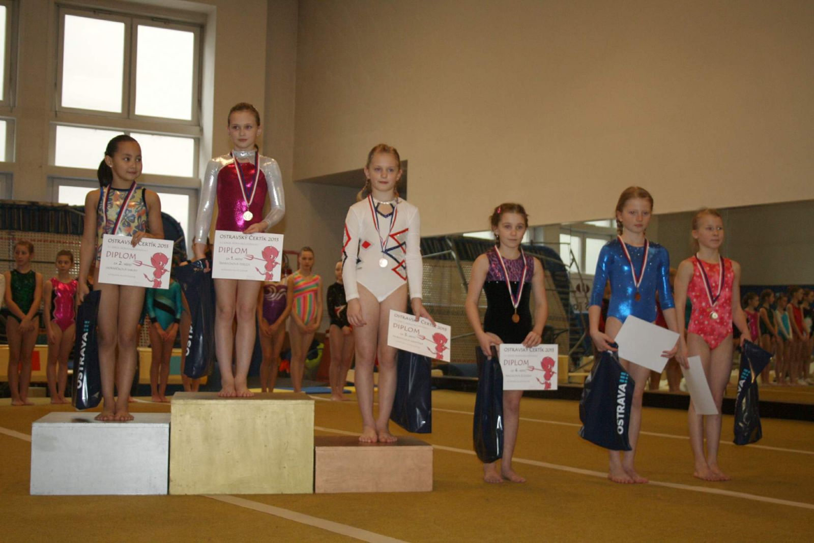 V nejmladší kategorii nastoupilo hned 24 závodnic. Nejlépe se dařilo Sáře Moocové, která získala i přes zaváhání na prostných zlatou medaili. Stříbrnou medaili vybojovala Julča Poledníková. Sedmou příčku obsadila Verunka Šínová, osmá skončila Verunka Kociánová, dvanácté místo náleží Nikolce Slívové. Klaudinka Hynek skončila na patnáctém místě, Míša Šeligová byla devatenáctá a nejmladší účastnice z našeho oddílu Johanka Recmanová obsadila 24. místo.